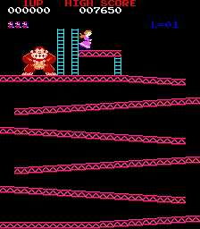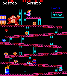 Donkey Kong (c) 1981 Nintendo. An absolutely legendary arcade game in which the player takes on the role of Mario - who makes his debut in this game, and would go on to become a gaming legend - and must battle his way to the top of each level to rescue his